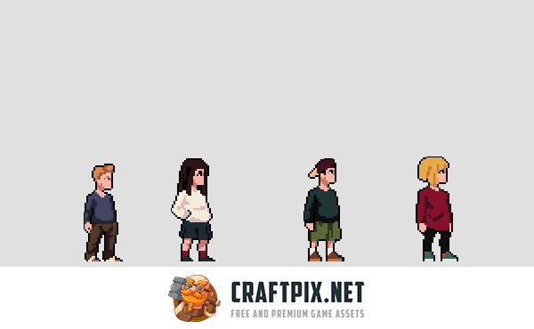 Each character is equipped with animations, including waiting, walking, running, sitting, crawling and much more, which gives the gameplay realism and expressiveness. Use this set to create a world where players will face difficult choices: collect resources or hide from danger in abandoned schools and houses. In addition, thanks to high-quality pixel graphics, the characters are easy to edit. Using popular graphic editors such as Adobe Photoshop, you can easily adapt them to your game projects.