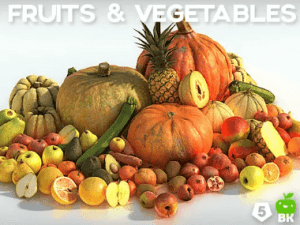 High quality 3D PBR scanned fruits and vegetables, ready to use, featuring apples, perrys, pineapples, potatoes, salads, cabbages, cauliflowers, tomatoes, turnips, watermelons, oranges, bananas, and lot more.