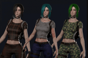 There are 3 options for coloring clothes. There are also textures of dirt and blood. There is a transparency map on the body. It can be turned on and off.